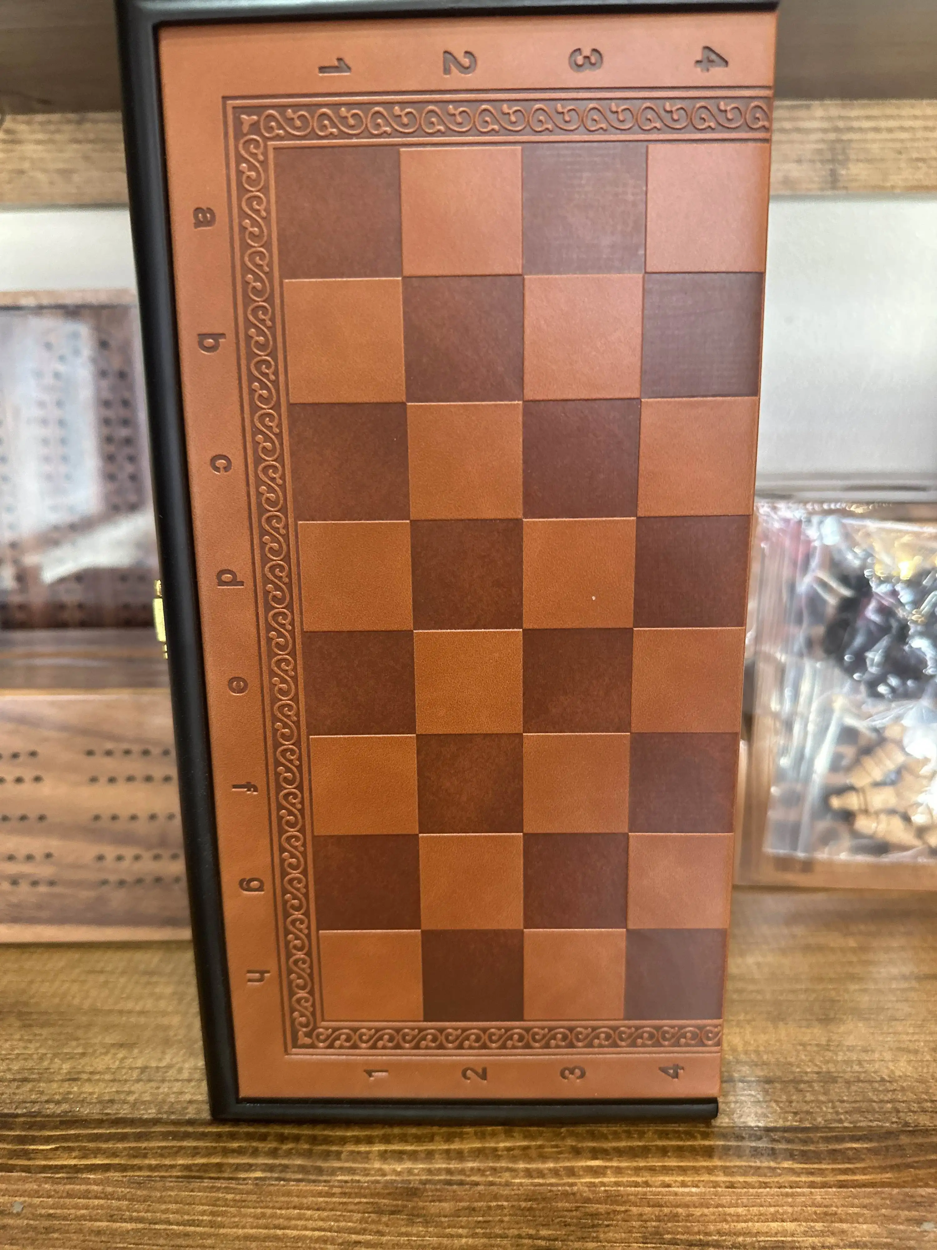 Set da tavolo da gioco pieghevole in pelle verniciata marrone piccolo con serratura per Set di scacchi per famiglie regalo per adulti per bambini # giochi di scacchi